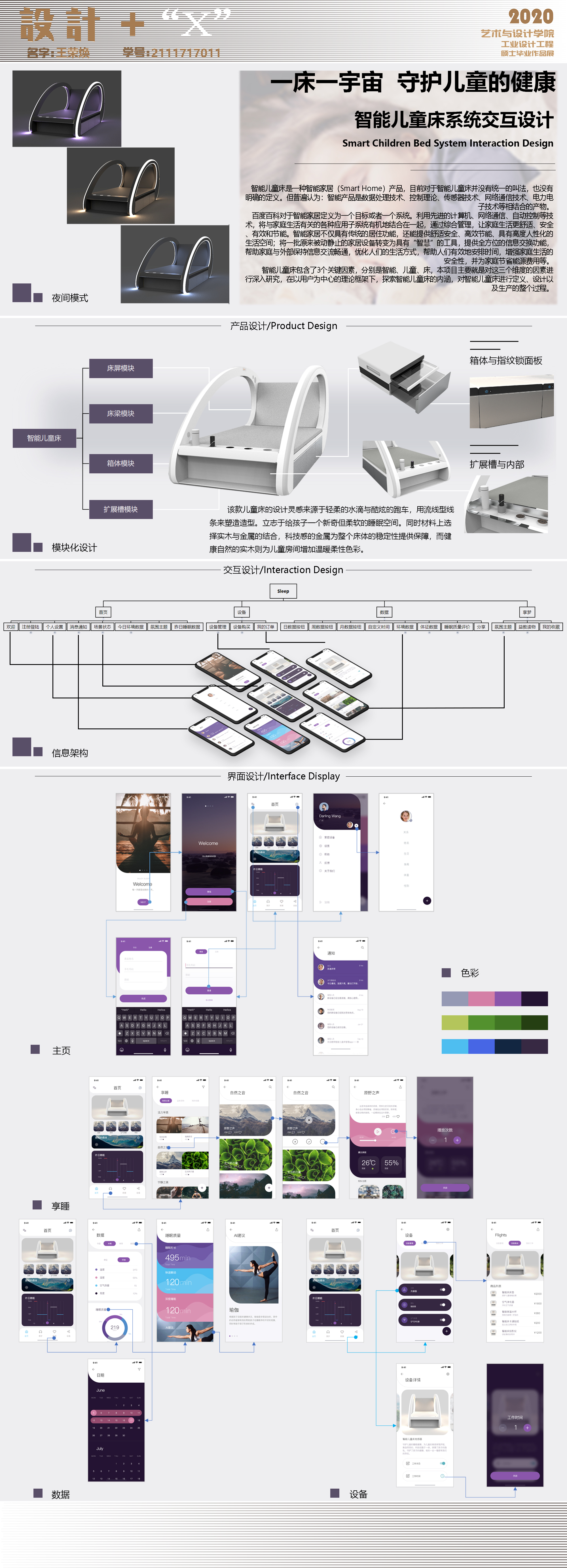 根据需求指标体系构建的原则,基于情感化设计三层次理论构建需求评价指标体系,根据指标体系中的所得到的指标和客观量化的数据信息反馈指导设计进行。一床一宇宙,守护儿童的健康。既是以用户使用儿童床的目的最终需求——保障儿童睡眠健康,让孩子健康成长为产品市场的切入点,符合人们由于生活质量的提高,对睡眠健康的愈发重视的要求;同时,也是顺应目前“互联网+”健康大潮下的,具备发展智能健康生态的潜力,适合产品后续的发展和智能家居生态的建立。