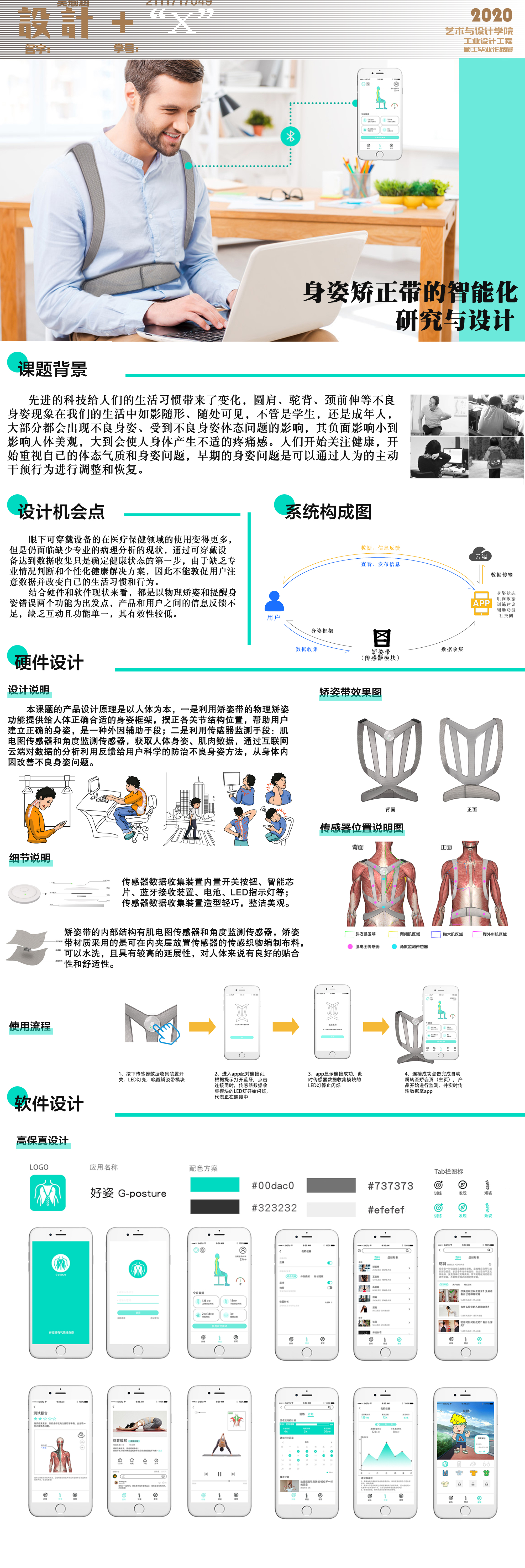 本课题关注生活中的不良身姿现象,旨在通过可穿戴设备和高科技手段的结合帮助人们改善不良身姿及其对人体的负面影响。