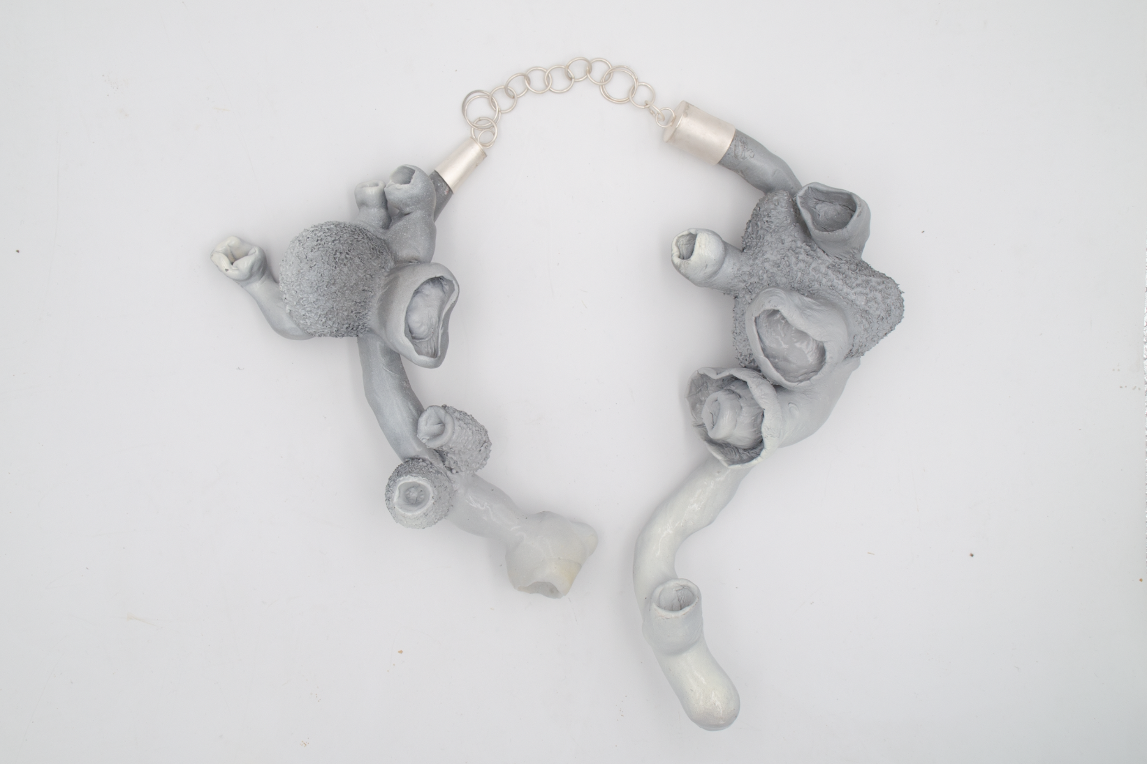 当今自然环境问题愈显愈烈,开始有越来越多的生物因环境问题而引起生物不可遗传变异。如核污染引发青蛙畸形,蝴蝶翅膀不能发育;人类对环境的污染导致大气温度上升、海平面上升和海洋酸性不断升高,其中使珊瑚礁受到严重白化影响,这种破坏也将成为那些依赖珊瑚礁为生和觅食的海洋生物的灾难。我从中汲取灵感,设计一套首饰,体现背后的环境危机,希望通过作品表达出在受污严重的地方生物被影响以及人类对环境的严重污染,引起大家的重视。也同时表达环境能因人们的付出而越变越好的愿景。