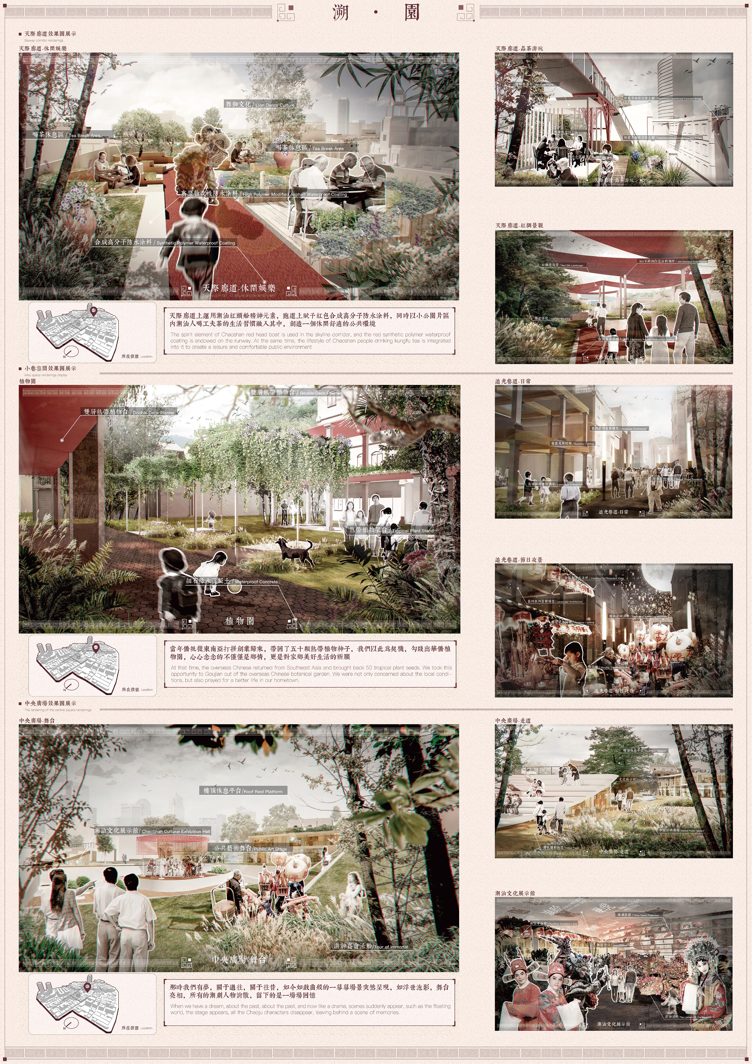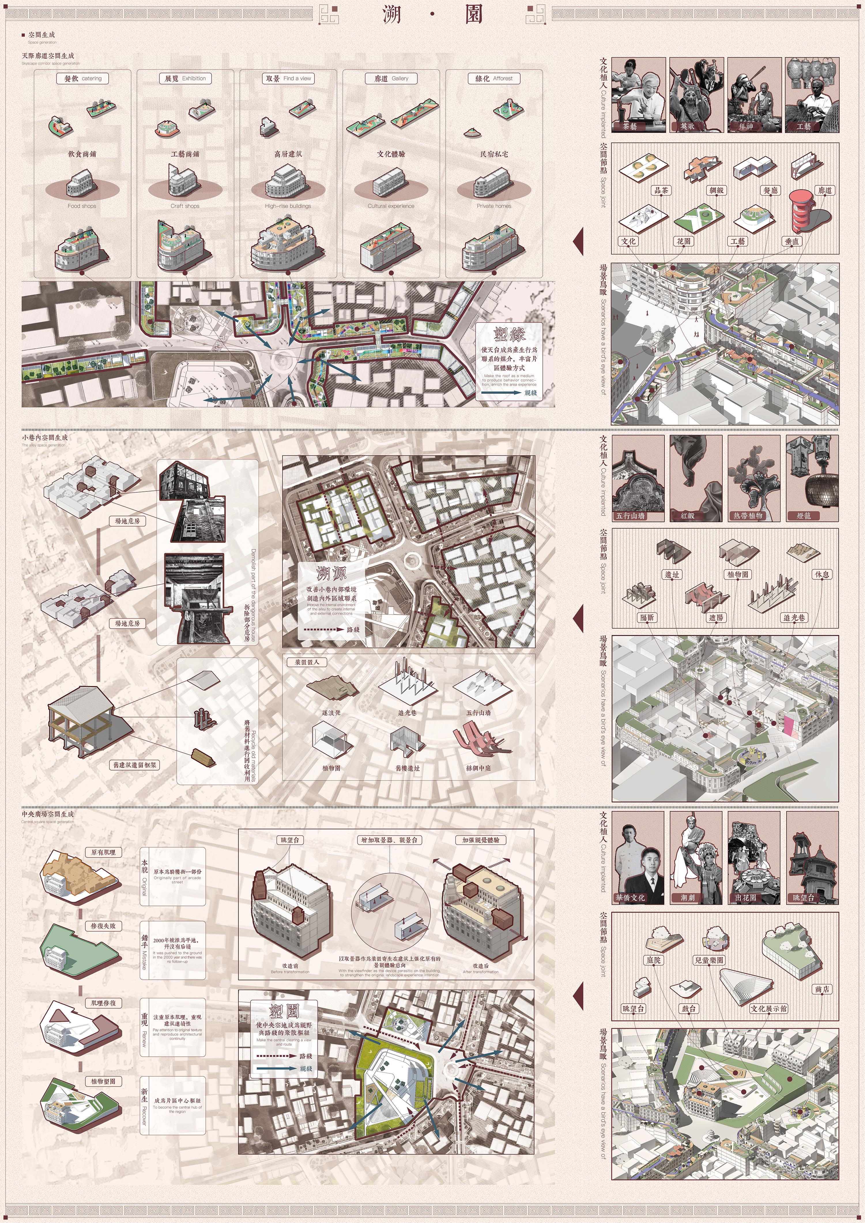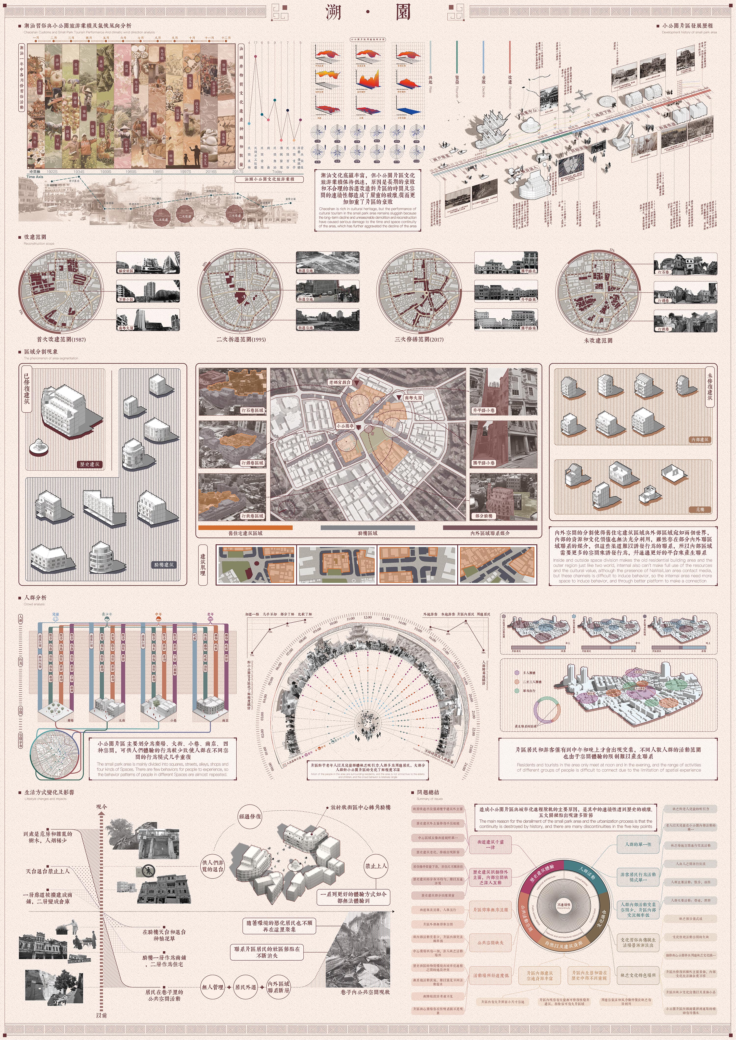 本方案在设计过程中主要以时间与空间连续性的修复为首要方向,通过对文化元素的提取,经过对片区内人群的调研选取需求,结合片区内空间的现状,总结出适合激活小公园片区活力的策略,从生活气息、传统文化、空间体验三个板块入手,将人作为单元诱发行为并扩散,引发时间空间的连续性。在方案中结合文化植入商业需求和节点,改善片区绿地及基础设施配套,丰富片区原真性体验,达到激活片区的目的。本次意图将将汕头小公园片区做一次实验性的改造,将历史街区重新作为文化核心,向外发散,向内凝聚,把潮汕的传统文化用新的方式展示给每一个不曾了解它的外地人,也留给每一个眷恋它的家乡人。