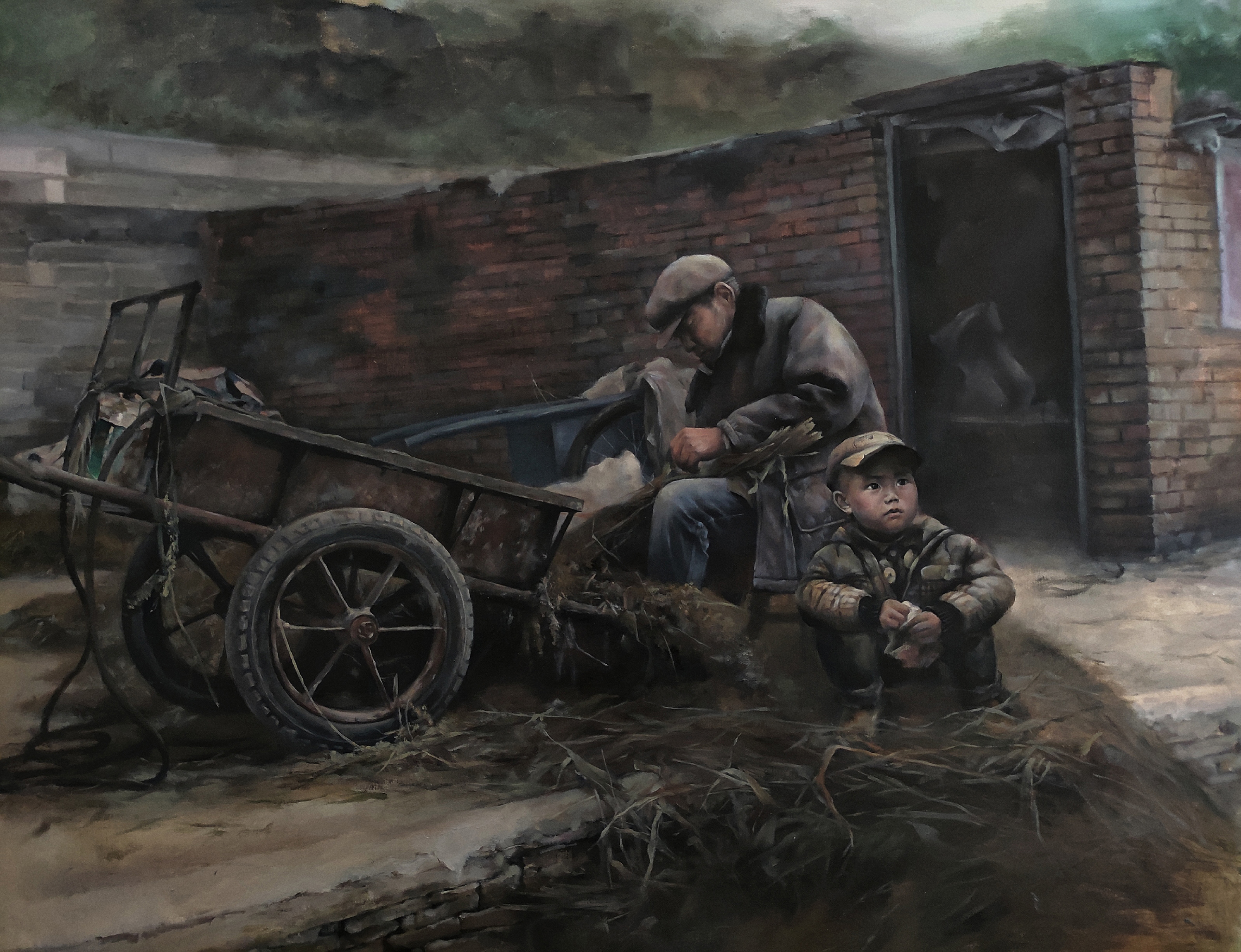 有一次外出写生时看到了一些乡下人干活的场景,让我想起了小时候的日子,随着时间的推移,让我对故乡和童年有了一个更深的情感,我总是寻思如何在绘画里寄予这份情感,于是我把那些场景拍了下来,拼凑素材,随后画了我的毕业创作。