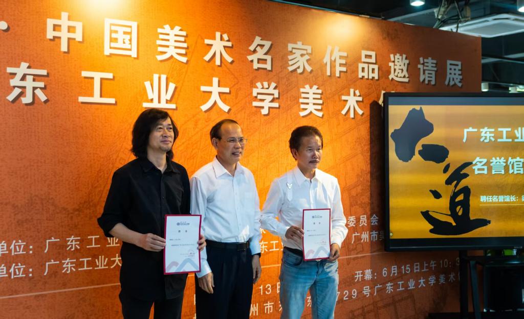 仪式现场,邱学青、黎泽林、许鸿飞、王绍强、侯宝川、孙黎、宋陆京、张洪亮一同为“广东工业大学美术馆”揭牌。随后的聘任仪式上,著名艺术家王绍强、许鸿飞受聘为名誉馆长;张洪亮任馆长,陈天、蒋弘烨、邹继科任副馆长。同时,王绍强、许鸿飞、张志祥受聘为90分钟足球网