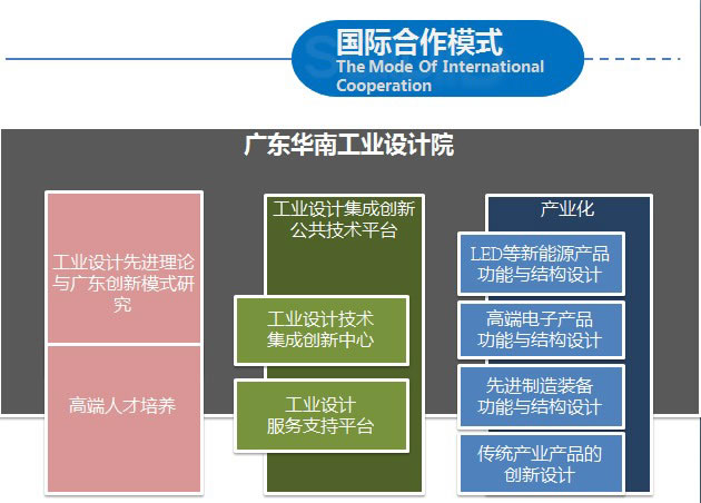 广东华南工业设计院(以下称“华南设计院”)于2006年11月成立,由广东省东莞市人民政府和广东工业大学投资共建,建设资金2000万元。自成立以来,华南设计院努力发挥自身设计平台、信息平台、交流平台和技术平台的作用,以创新设计为手段,以缔造企业品牌为核心,为企业提供产品开发设计前期的调研分析、产品创意概念、产品企划与策略,以及产品设计、交互设计、结构设计、模型手板制作、功能样机制作、模具设计等服务。目前,华南设计院与国内外的3000多家企业建立了业务联系,已为300多家企业单位成功设计了400余项个项目包括消费电子、机械设备、医疗设备、玩具创意、电脑周边、仪器仪表、家居家具等各类产品,为企业取得了10亿元以上良好的经济效益。设计院取得的各项成绩,获得东莞市政府高度肯定,并同意继续投入1.5亿元建设“广东华南设计创新园”,深化设计创新推动东莞产业升级转型的成果。